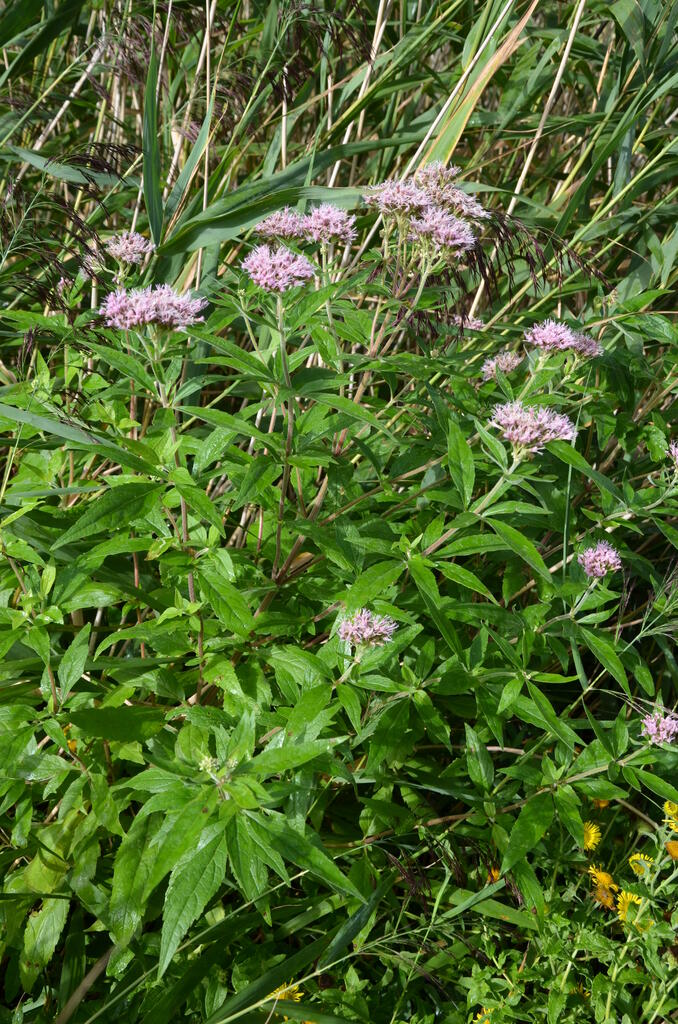 Ourlet de physionomie prairiale dominé par le Brachypode penné (Brachypodium pinnatum) qui est associé à quelques espèces de mégaphorbiaies telles que l'Angélique sauvage (Angelica sylvestris) et surtout l'Eupatoire chanvrine (Eupatorium cannabinum) qui peut faire faciès. Végétation à structure complexe avec plusieurs strates, la supérieure dominée par des espèces d'ourlets (Trifolion medii), de prairies (Arrhenatherion elatioris) et de mégaphorbiaies, qui dépassent des espèces de plus petite taille, en particulier de pelouses (Carex flacca, Sanguisorba minor, etc.). Communauté assez haute (50 à 70 cm) et dense (recouvrement de 100%). Optimum phénologique estival. Ourlet formant souvent un liseré de largeur variable au pied des coteaux; parfois en nappe sur quelques coteaux marneux abandonnés.